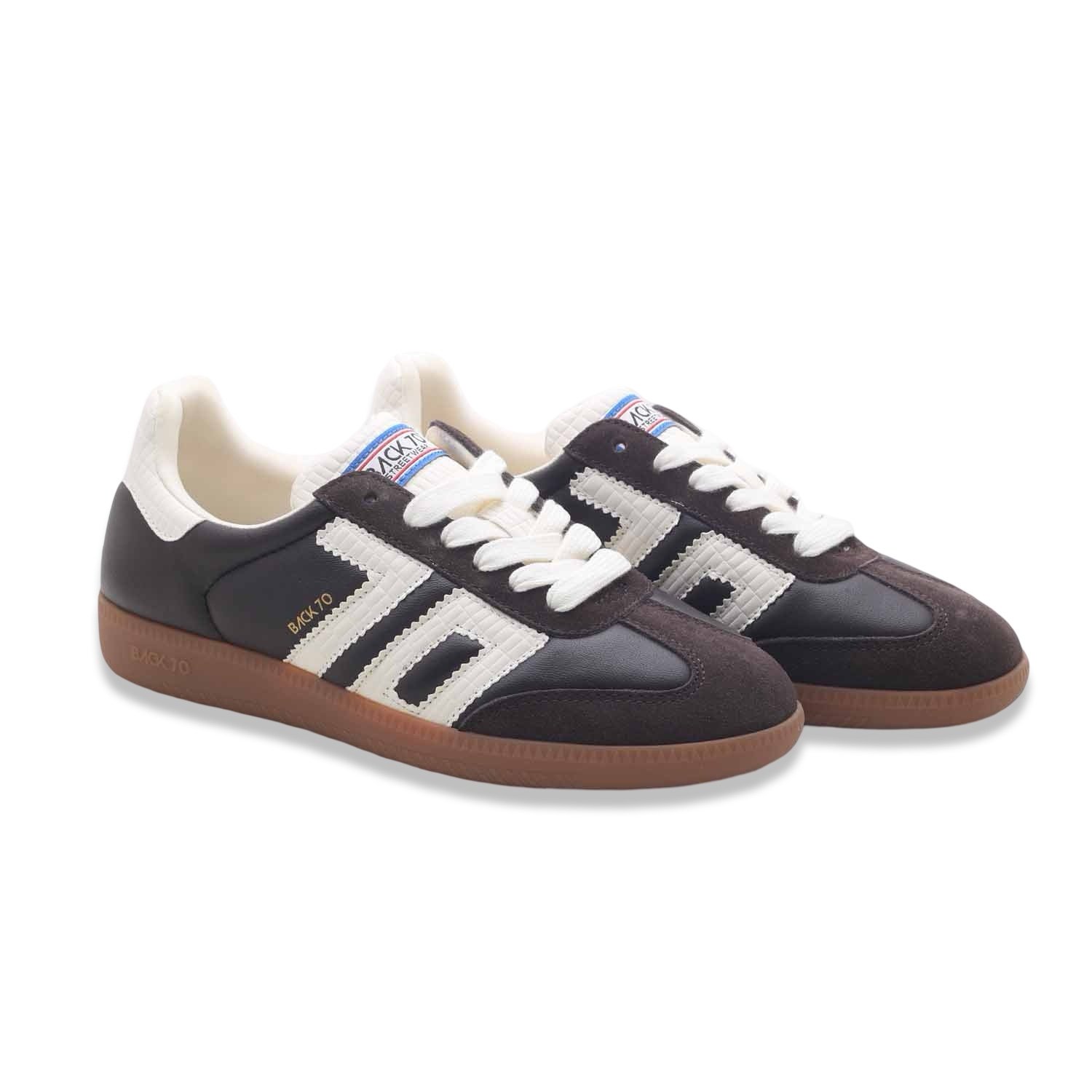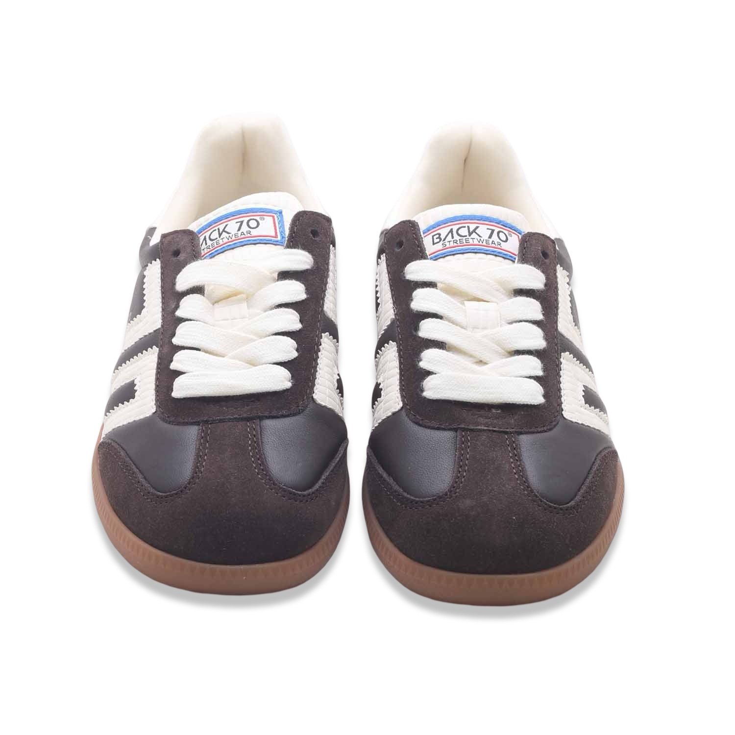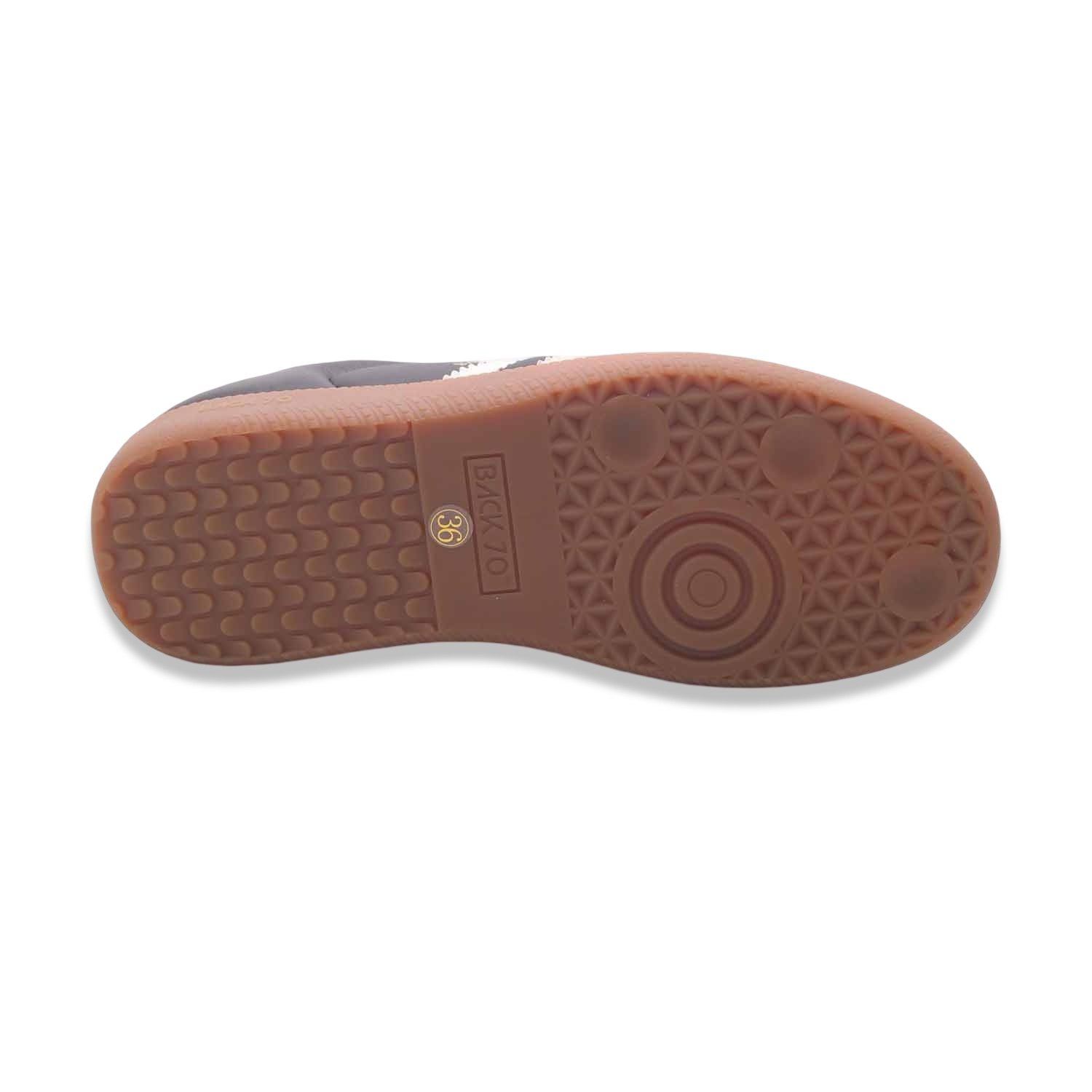 Il logo vintage Back70 sulla linguetta richiama i vibes old school 🕶️, mentre la suola in gomma naturale color miele 🍯 assicura grip e comfort a ogni passo.