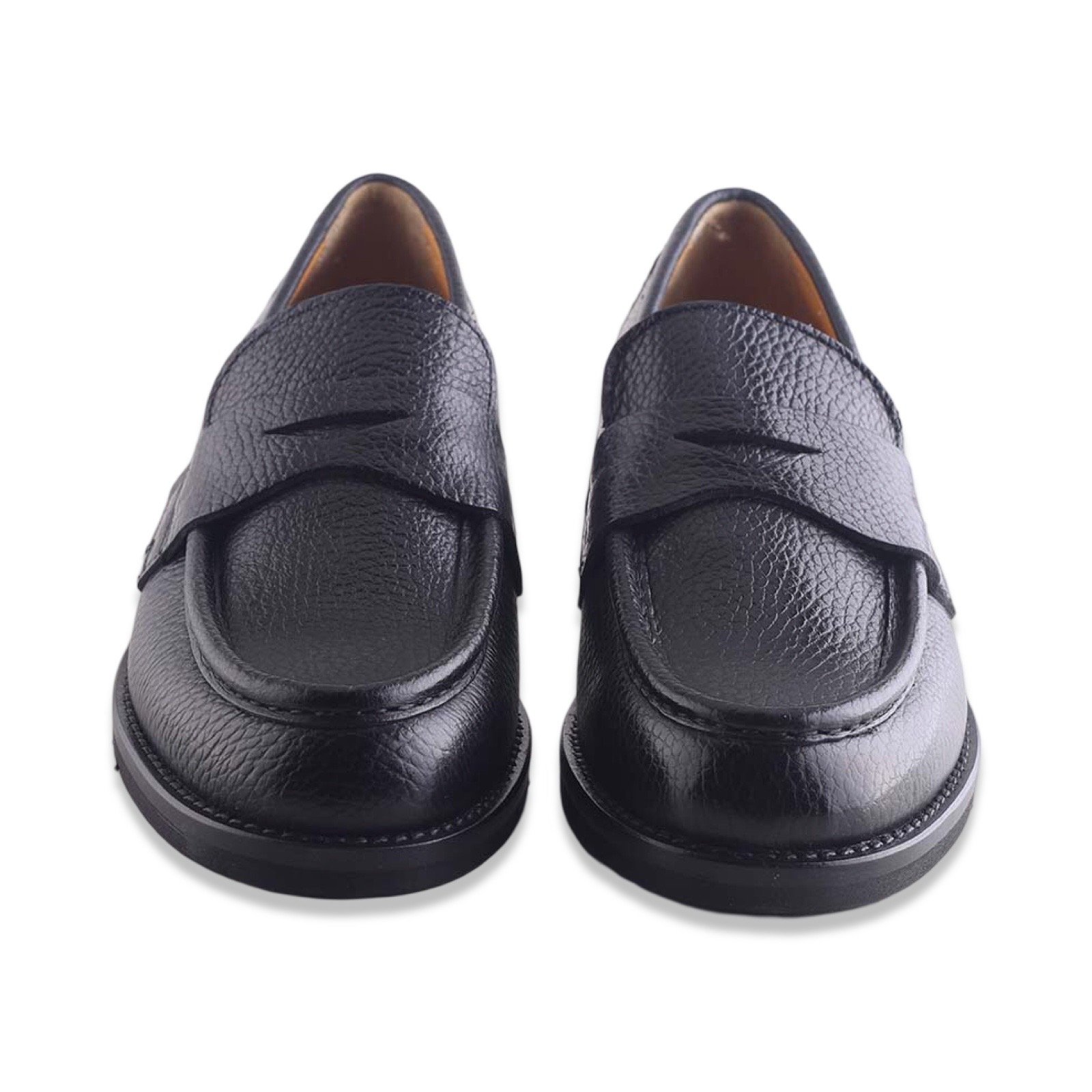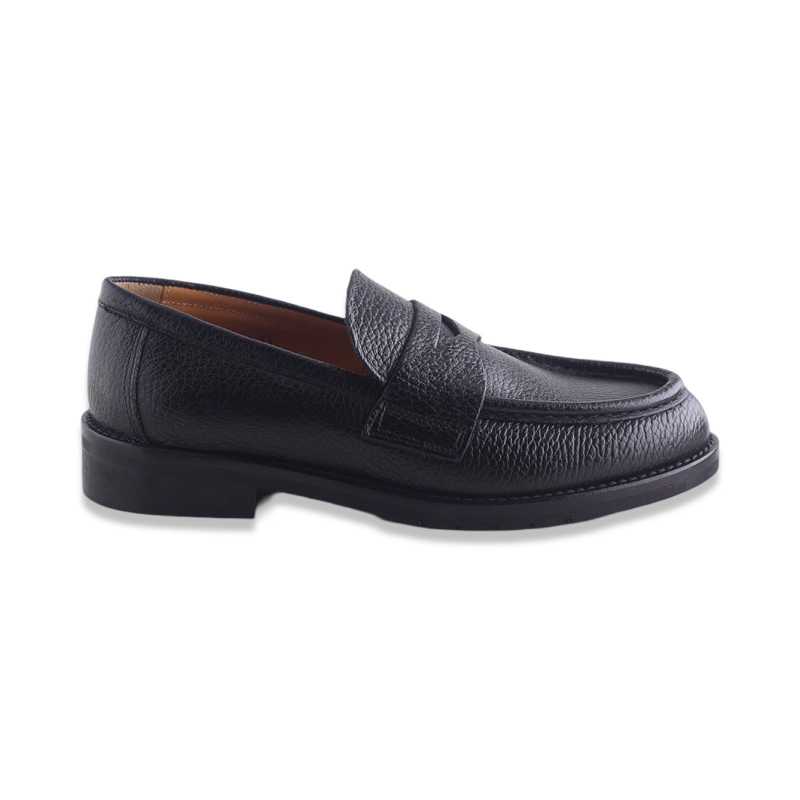 Mocassino stile maschile in pelle bottolato con mascherina porta penny. Fondo in gomma. Made in Italy
