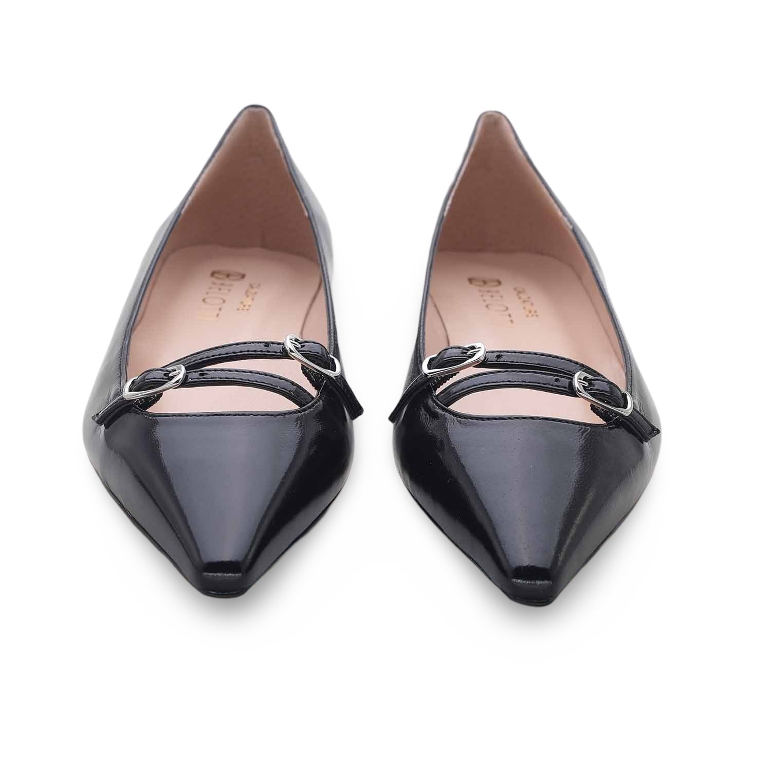 Un connubio perfetto tra classe e praticità. Queste ballerine nere in pelle lucida, realizzate interamente in Italia, sono pensate per la donna che desidera uno stile sofisticato anche nella quotidianità. Il design a punta affusolata slancia la figura, mentre il doppio cinturino con fibbie metalliche aggiunge un dettaglio chic che non passa inosservato.