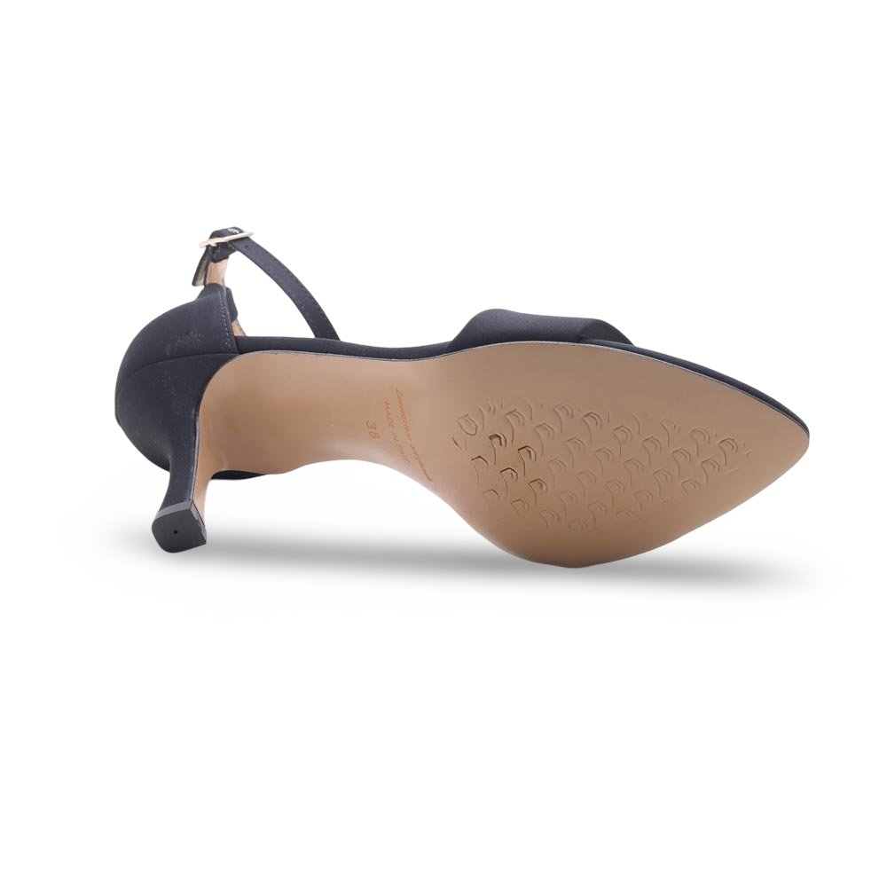 Belotti Drava – Sandalo Nero in Tessuto con Cinturino alla Caviglia – Sottopiede in Pelle – Made in Italy