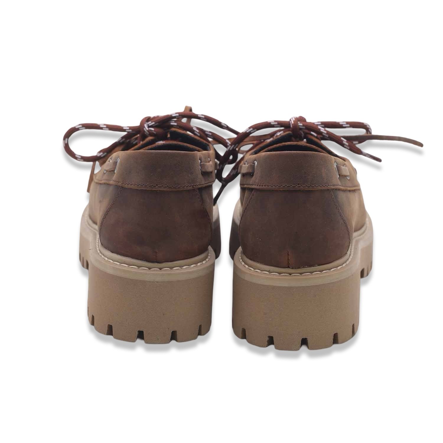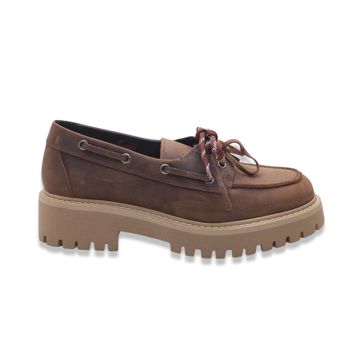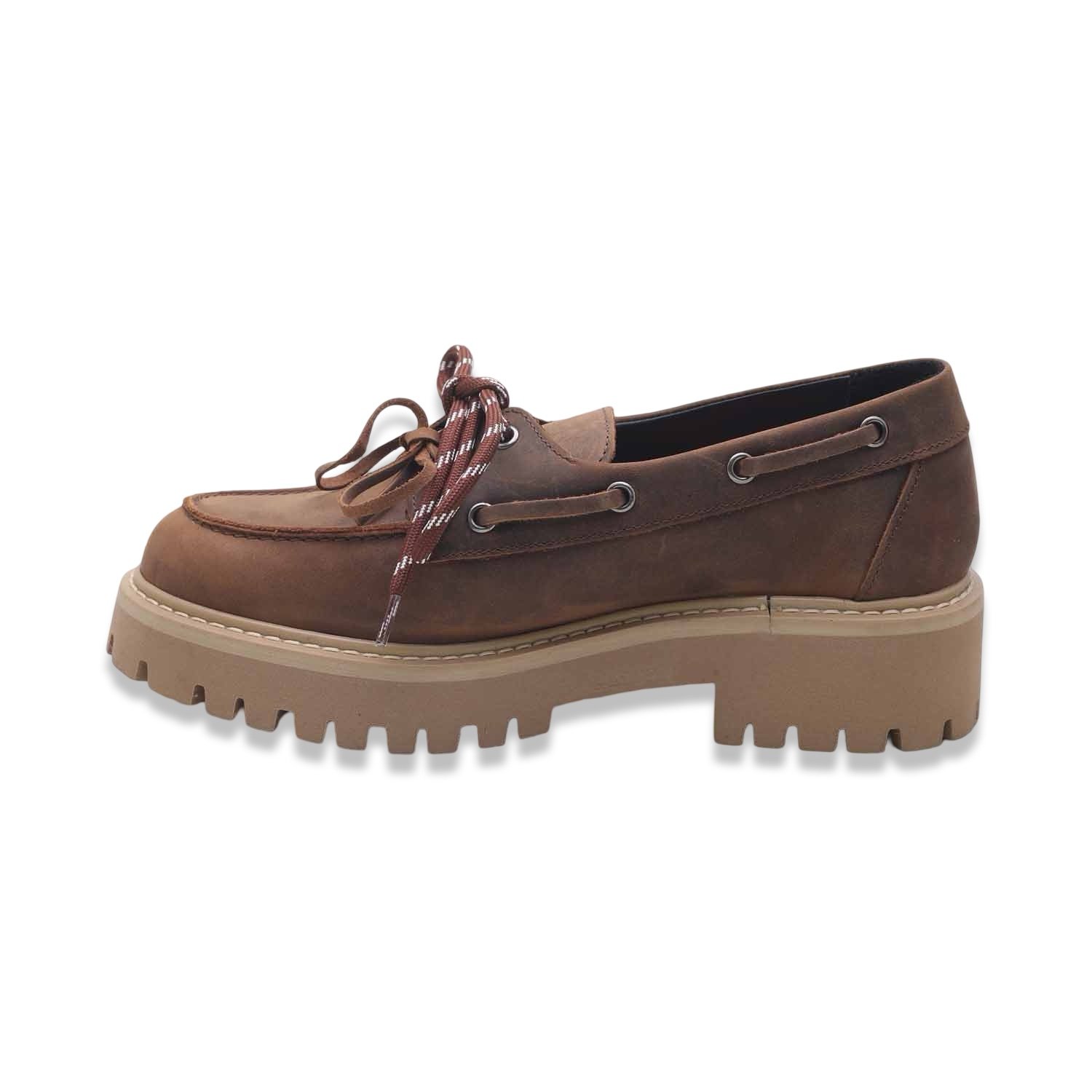 Le Belotti Kikka Cuoio reinterpretano il classico mocassino da barca in chiave contemporanea, con una suola platform grintosa e un design deciso ma raffinato ⚡