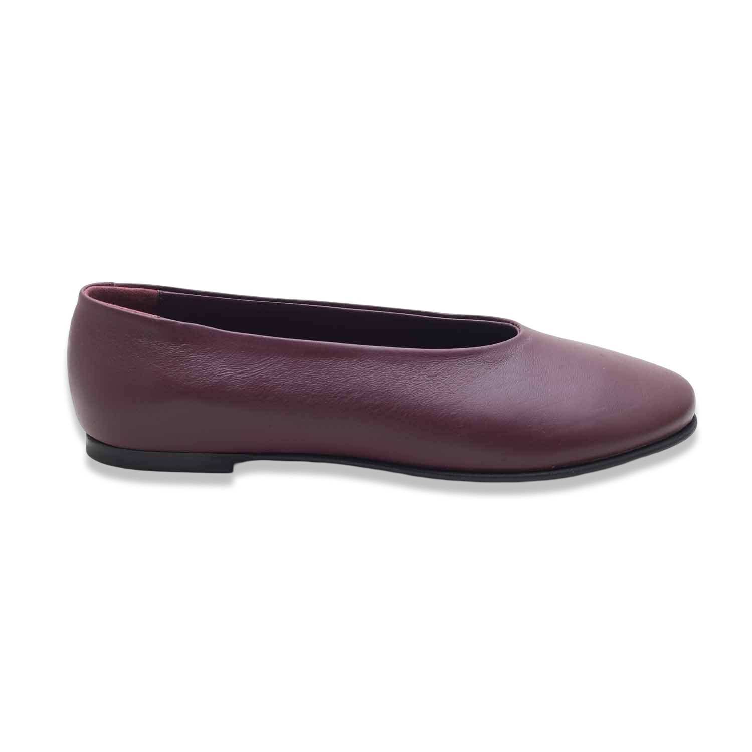 Design essenziale e raffinato per questa ballerina in morbida pelle bordeaux, realizzata interamente in Italia. La forma pulita e il taglio arrotondato ne fanno un modello elegante e versatile, perfetto per ogni occasione quotidiana. La suola flessibile e leggera garantisce comodità durante tutta la giornata.