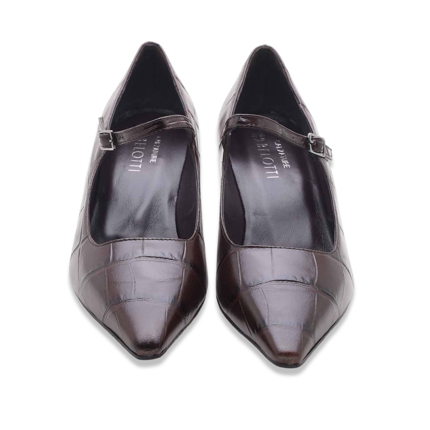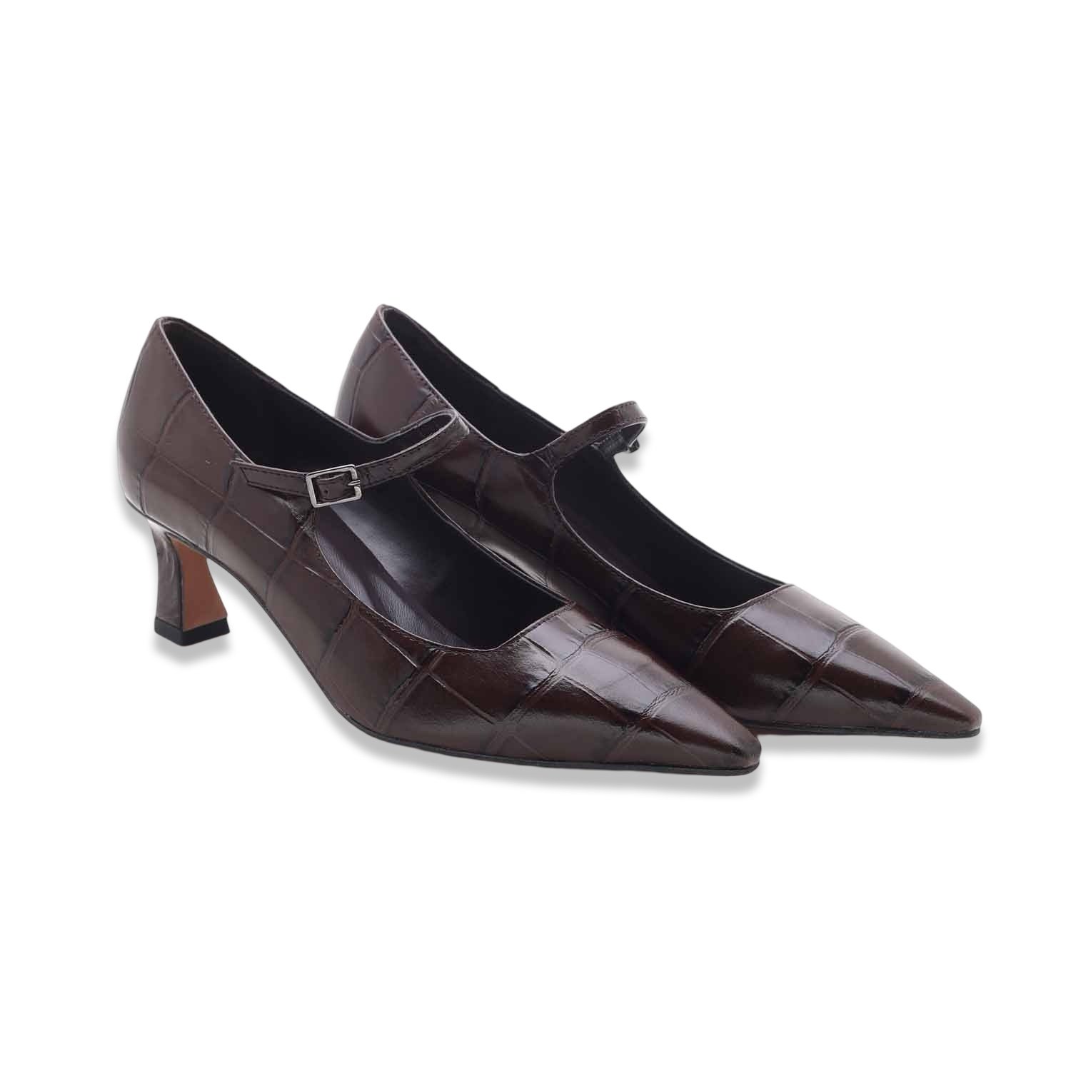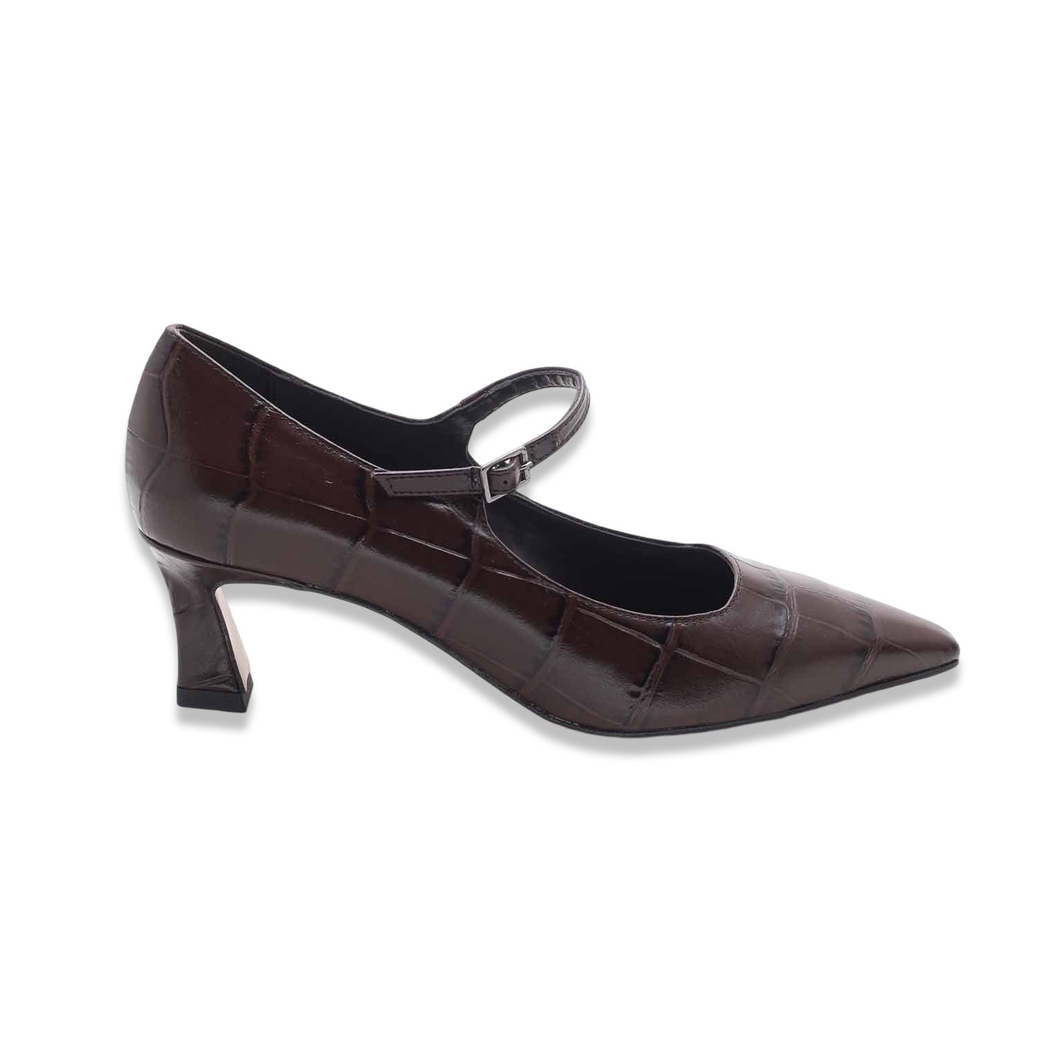 Décolleté Mary Jane in pelle stampata coccodrillo – Made in Italy