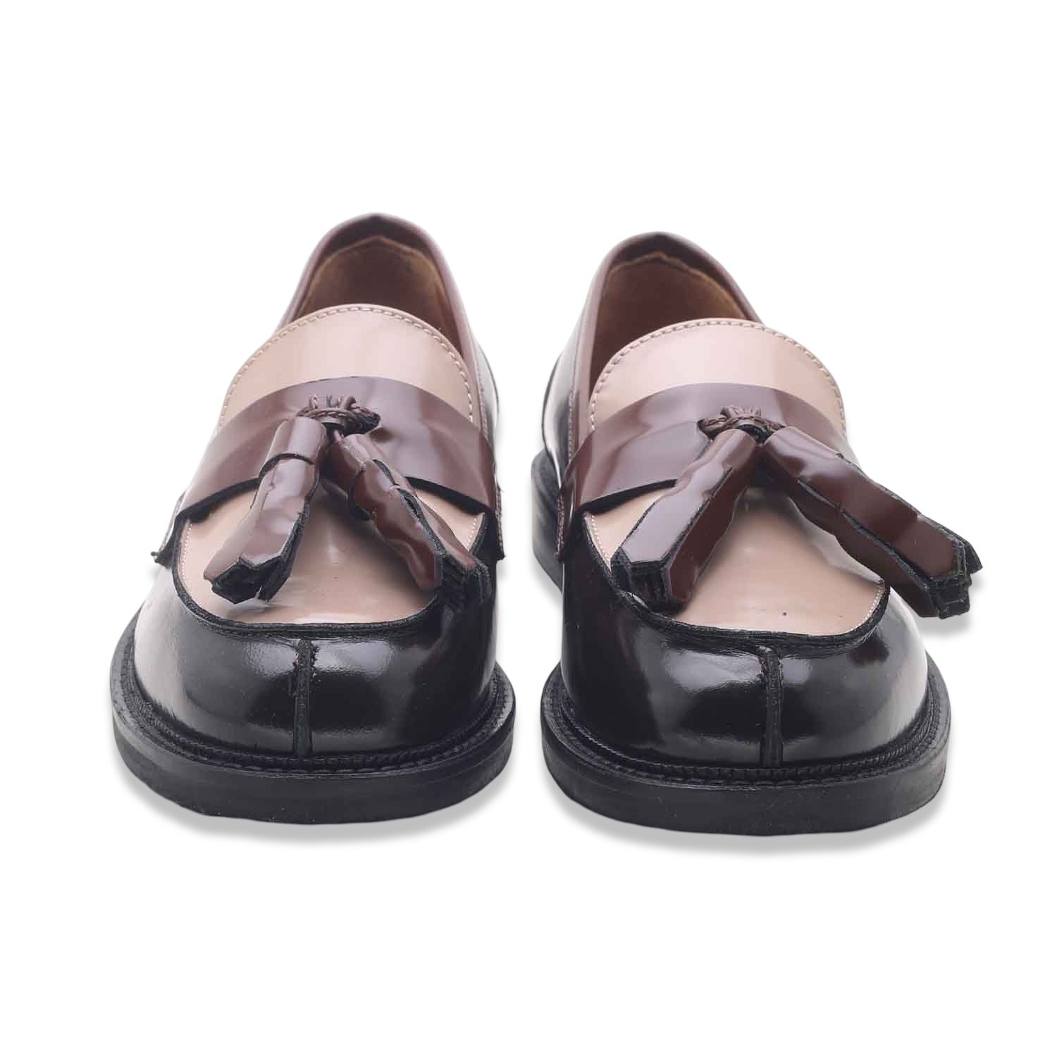 Perfette per chi ama lo stile classico con un tocco di carattere: questi mocassini con nappine in pelle lucida presentano un elegante mix di colori moro, marrone e beige che li rende unici e raffinati. ✨