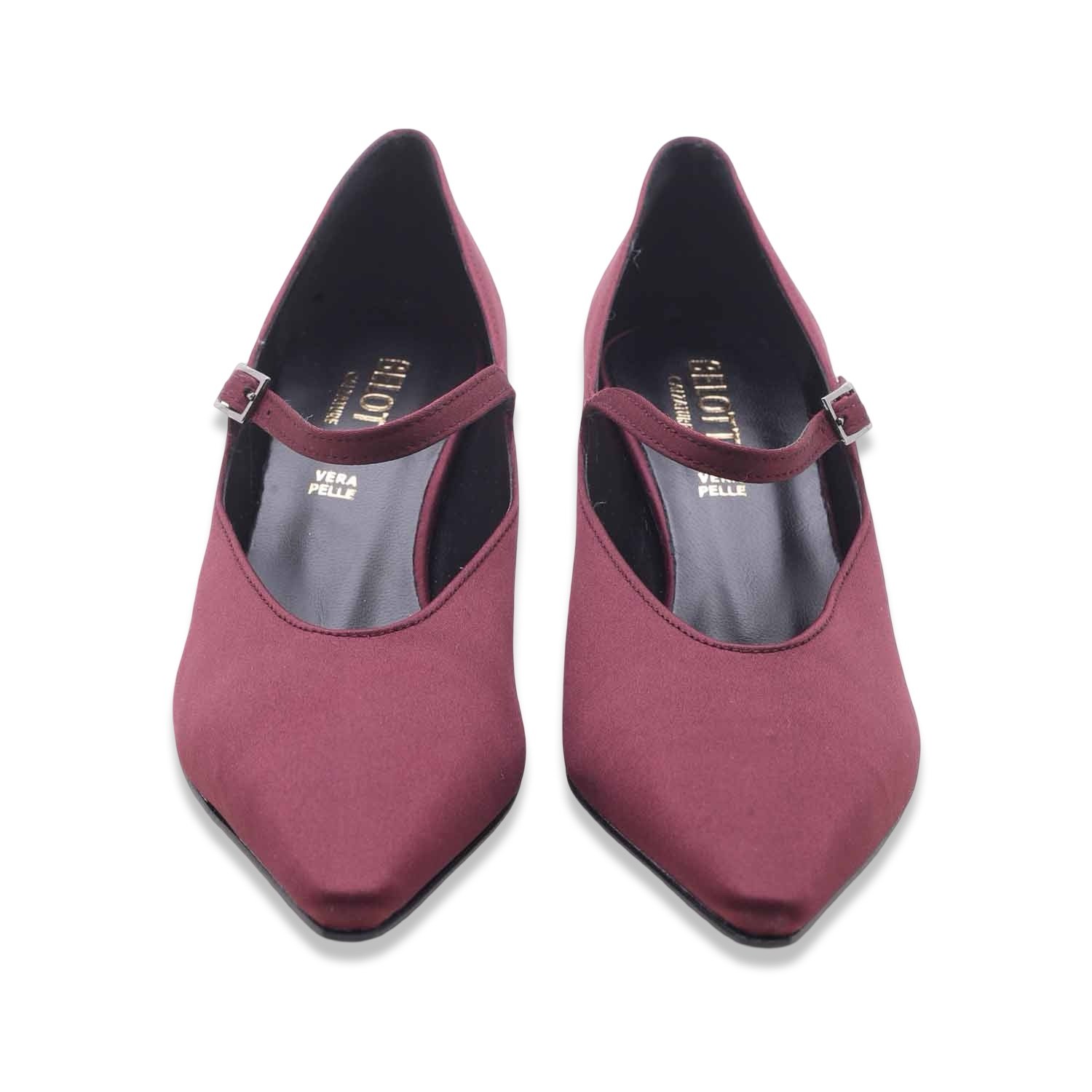 Un modello elegante e senza tempo: questa décolleté Mary Jane è realizzata in raffinato tessuto color bordo’🌸. La punta affusolata dona slancio alla silhouette, mentre il cinturino sottile con fibbia laterale aggiunge un tocco femminile e sofisticato ✨.