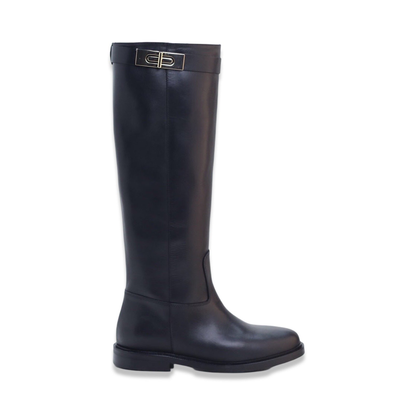 ✨ Stivale alto Made in Italy – Realizzato in pelle liscia nera di alta qualità 🖤, questo stivale rappresenta un mix perfetto tra eleganza e funzionalità.