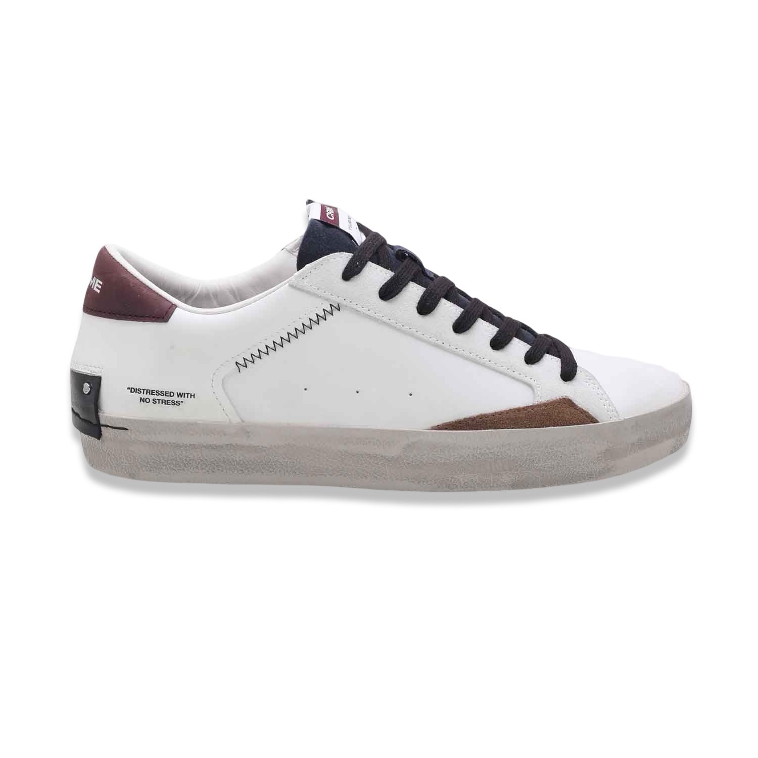 Le Crime London Distressed combinano il design pulito tipico del brand con un tocco vintage dal fascino vissuto. Realizzate in pelle di alta qualità, presentano inserti in scamosciato e finiture effetto “used” che conferiscono carattere e autenticità.