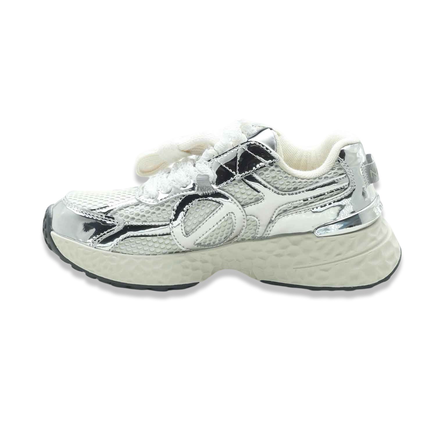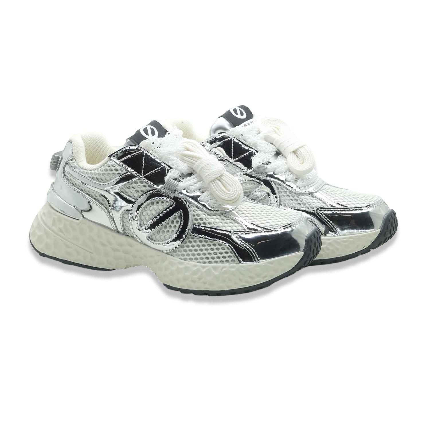 • Tomaia effetto specchio silver con inserti in rete mesh