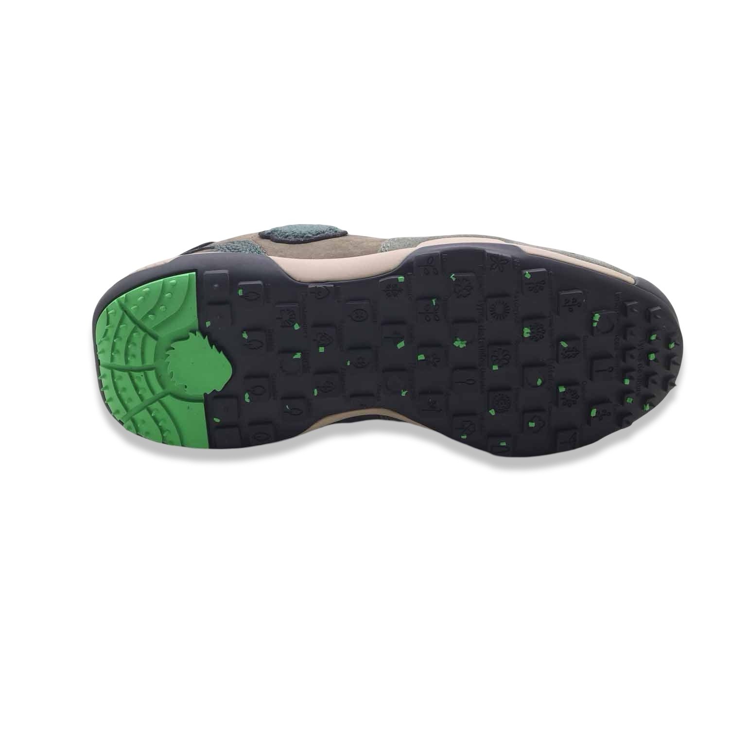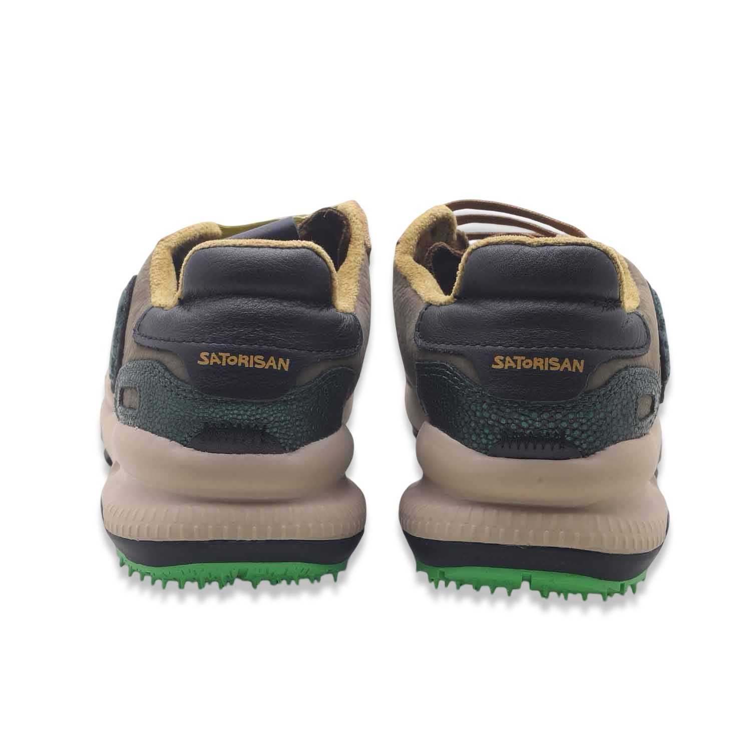 Sneaker unica nel suo genere, la Premium Green di Satorisan è un mix perfetto tra creatività artigianale e comfort avanzato. Il design è fortemente espressivo grazie alla palette colori calda e ai materiali contrastanti. Ogni scarpa presenta lacci differenti (uno chiaro, uno verde oliva in velluto), sottolineando l’identità libera e non convenzionale del brand.