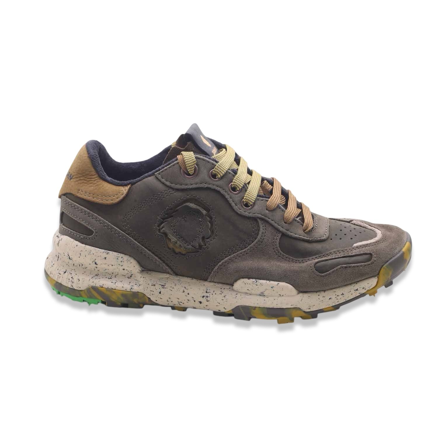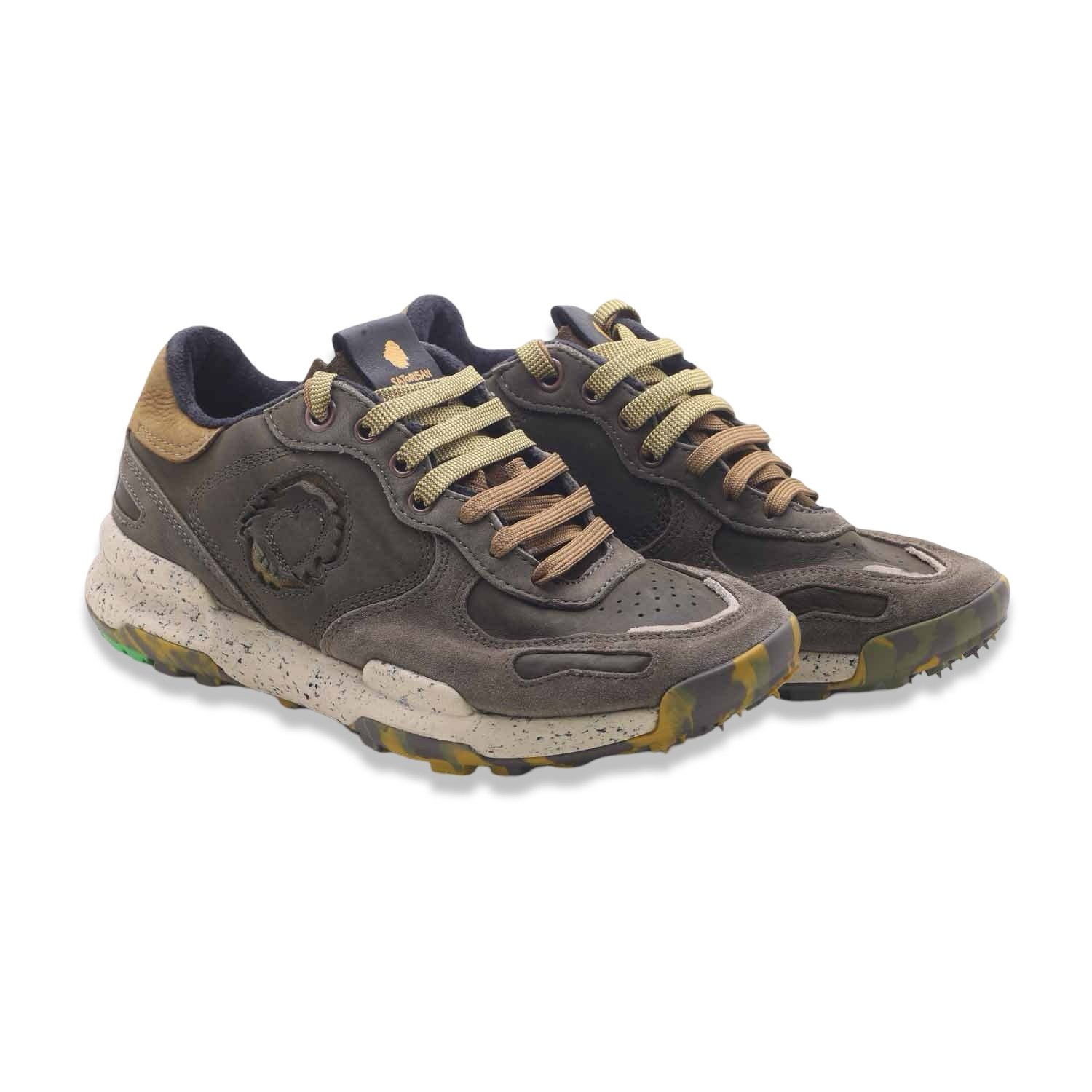 Sneaker robusta e dal look vissuto, perfetta per chi cerca comfort, durabilità e stile casual ricercato. Il modello Pull Up Swamp di Satorisan si distingue per la costruzione multistrato con tomaia in pelle scamosciata, dettagli tecnici e una suola grintosa adatta anche a terreni più irregolari.
