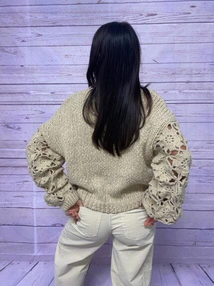 🤎 S.T.E – Maglione Uncinetto Taupe Il maglione S.T.E. Uncinetto Taupe è un capo dallo stile artigianale e contemporaneo, perfetto