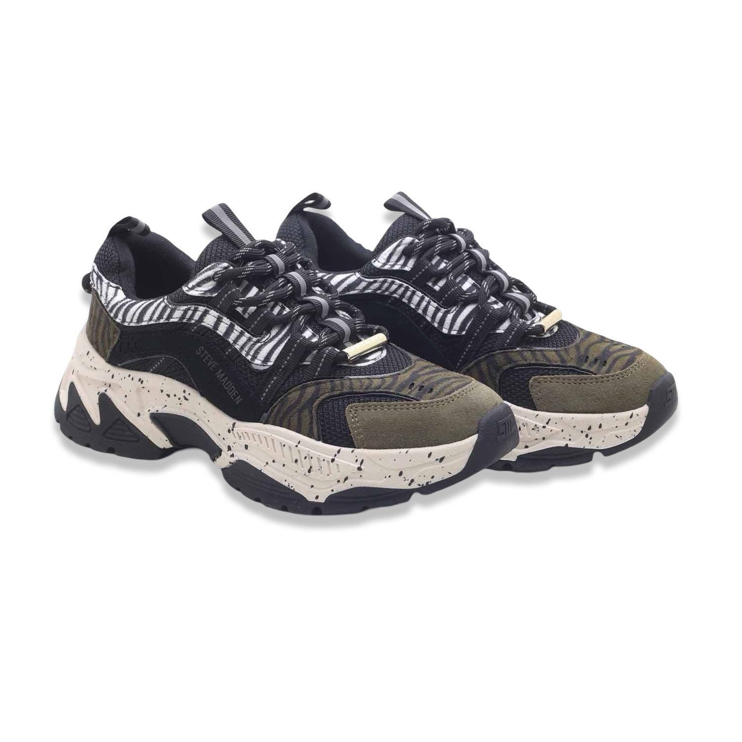 • Tomaia in mix di tessuti con effetto zebrato e maculato per un look wild ma sofisticato 🌍