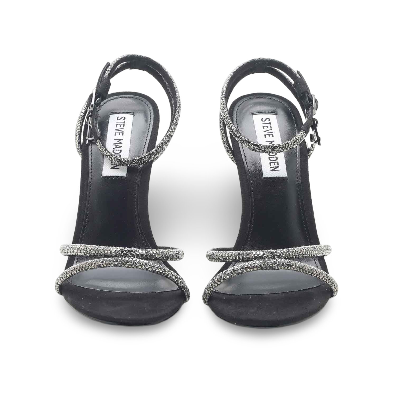 Preparati a conquistare la scena con questi sandali neri Steve Madden, pensati per far risplendere ogni tuo passo. Con i loro sottili listini tempestati di micro strass e il tacco stiletto slanciato, sono la scelta perfetta per chi ama distinguersi con eleganza e audacia.
