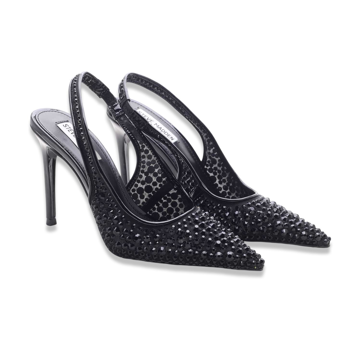 Un connubio perfetto tra sensualità e glamour. Le décolleté Steve Madden Reyes sono il modello ideale per chi desidera brillare con classe. Il design a punta affusolata si fonde con una pioggia di micro-strass neri applicati con precisione per esaltare ogni passo con una luminosità sofisticata. Il cinturino slingback dona stabilità, mentre il tacco a spillo slancia la silhouette con un’eleganza audace.
