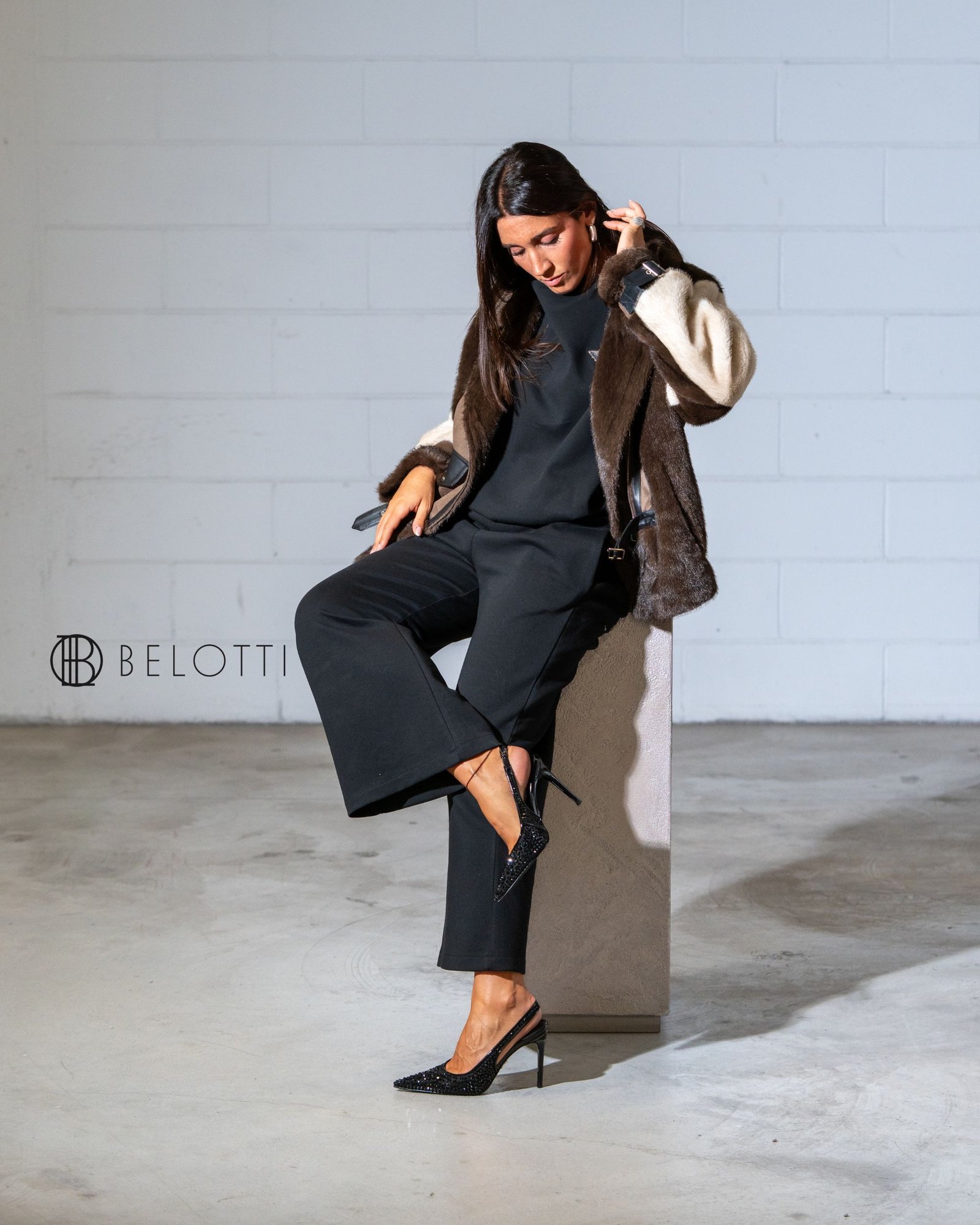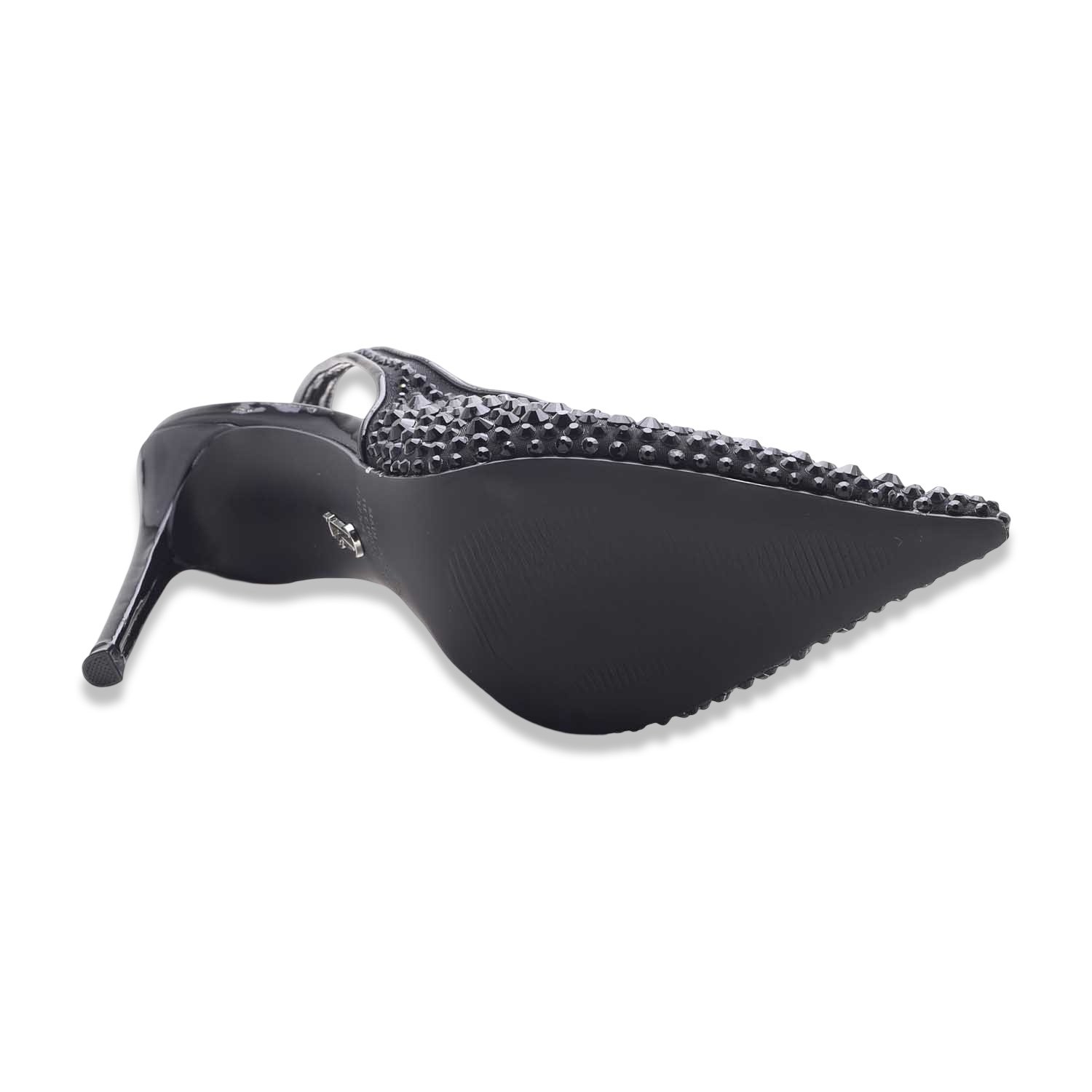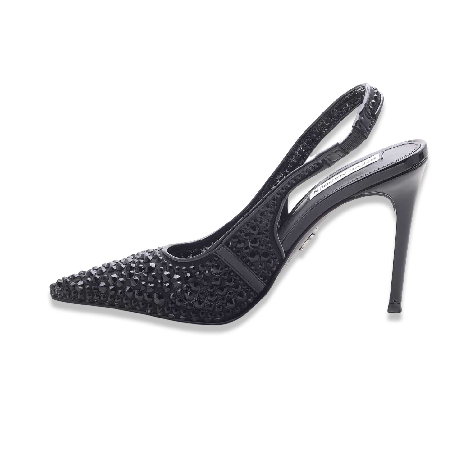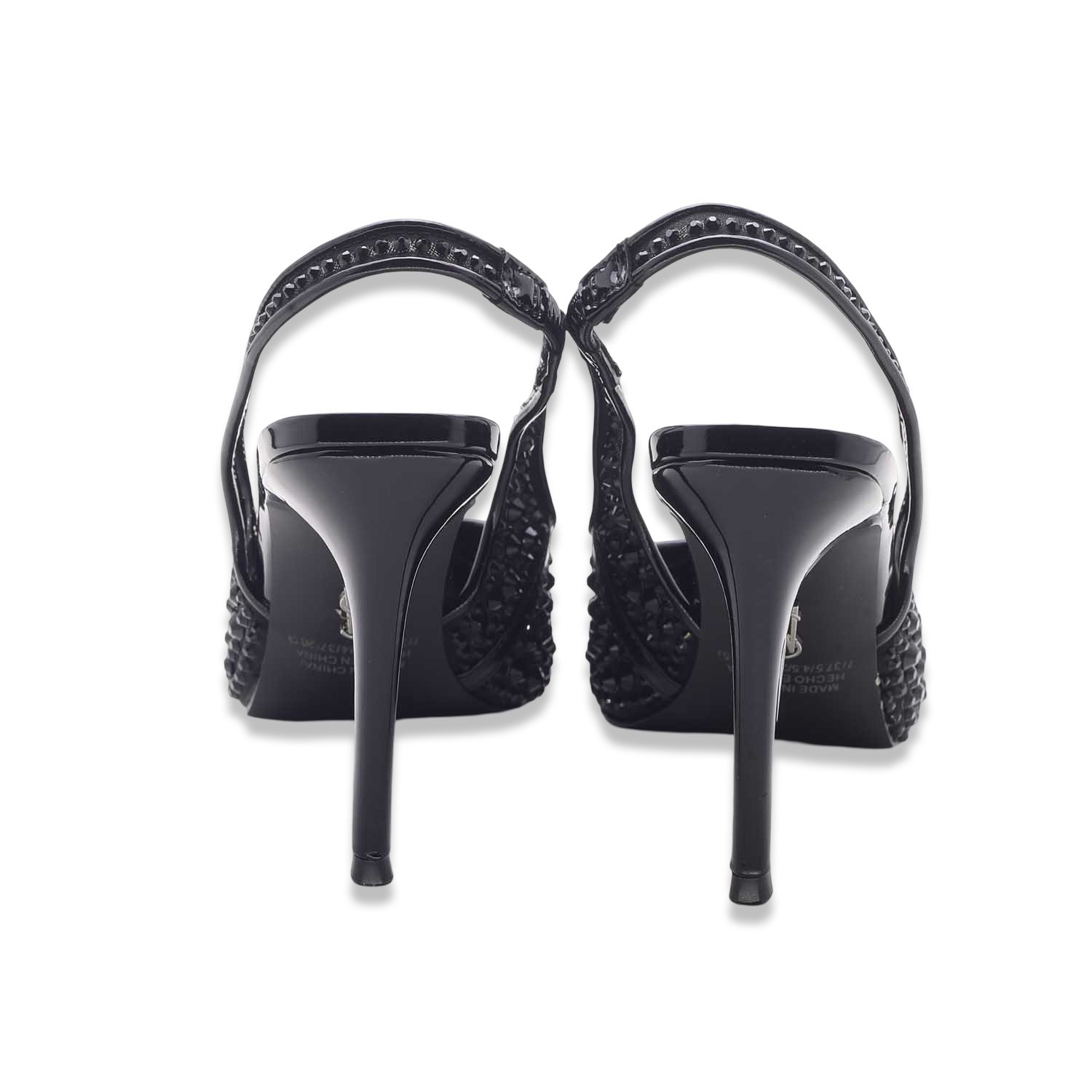 - Tomaia gioiello con applicazioni di strass neri effetto brillante.