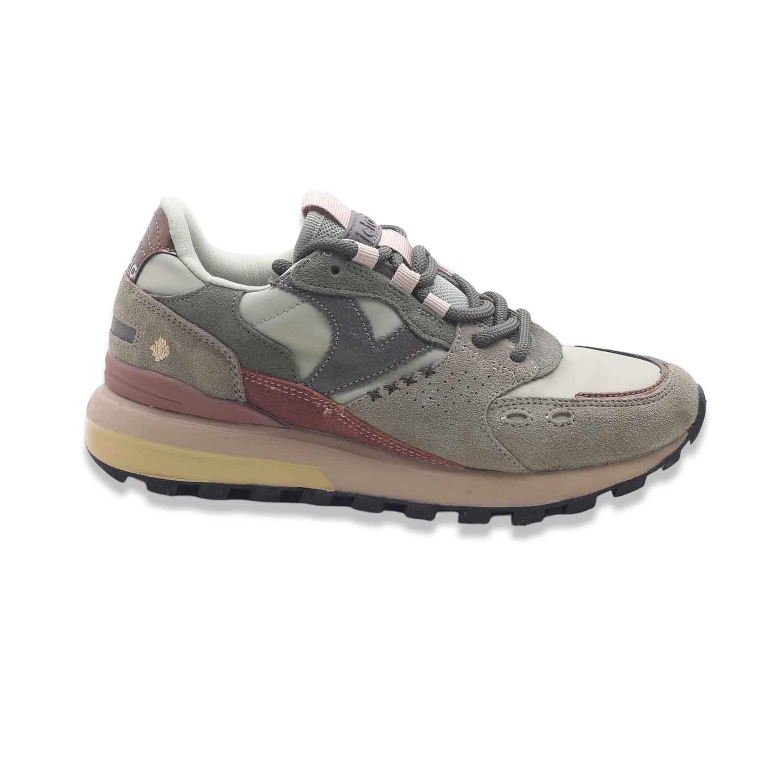La Victoria Luna Kaki è una sneaker dal look sofisticato e naturale, pensata per chi cerca uno stile casual ma curato. Con un mix armonioso di tonalità kaki, rosa cipria e beige, questa scarpa si distingue per la sua eleganza sportiva e per l’equilibrio tra materiali tecnici e pelle scamosciata.
